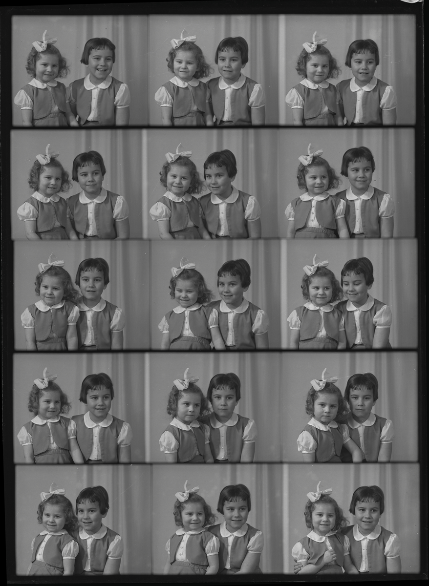 Grupporträtt, två barn. (Ingvor och Anita). polyfoto. Fru Ebba Andersson, Barnängsgatan 20 B, Hallstahammar.