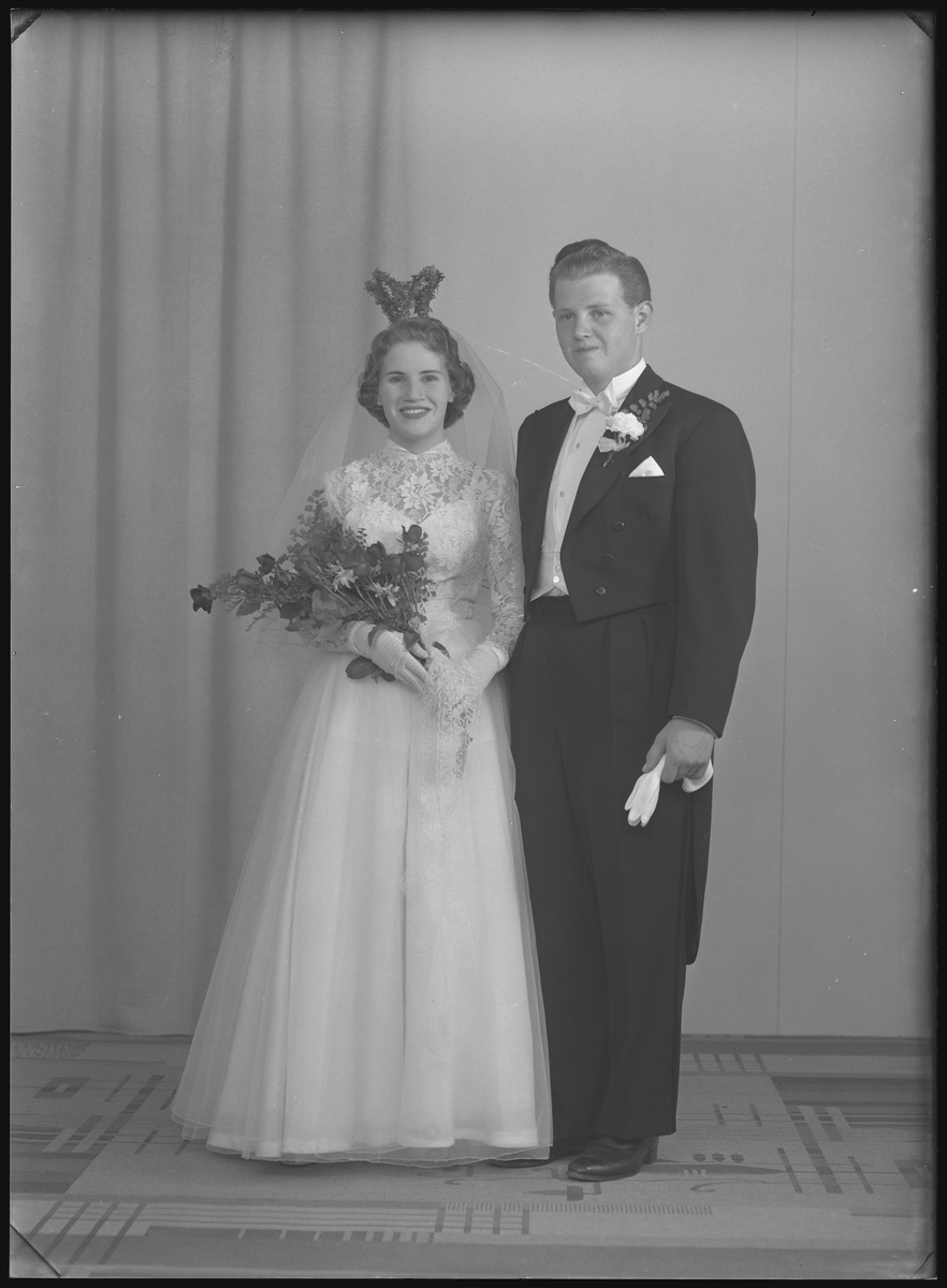 Brudpar. Kurt Dreifaldt, Karlsson. Strömsholm. Ur Gustaf Åhmans samling.