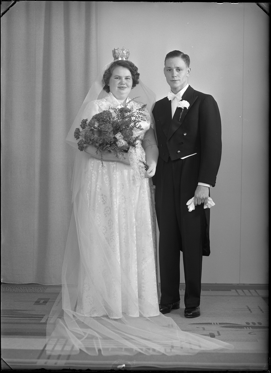 Brudpar. Erik Karlsson, Nybro, Vänsta, Kolbäck.