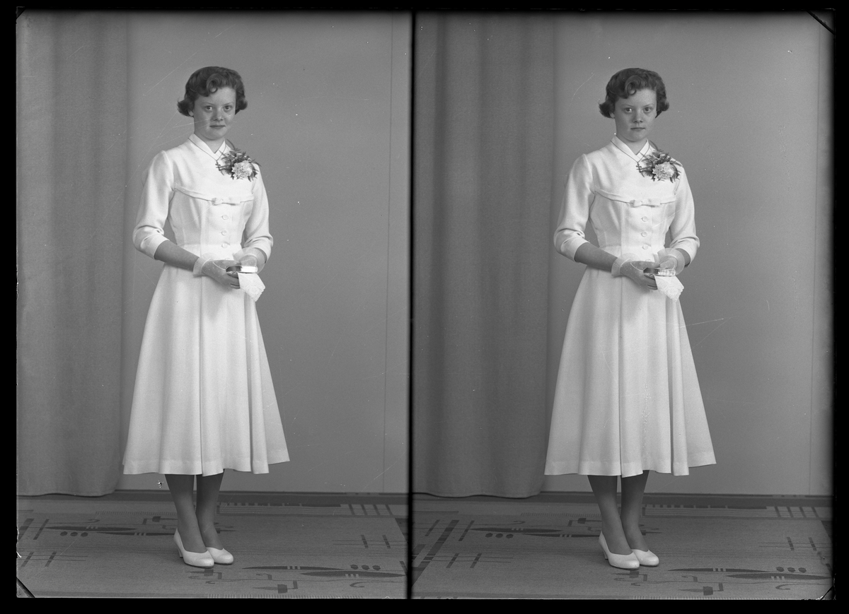 Porträtt, konfirmation. Monika Andersson, Kolbäck. Ur Gustaf Åhmans samling.