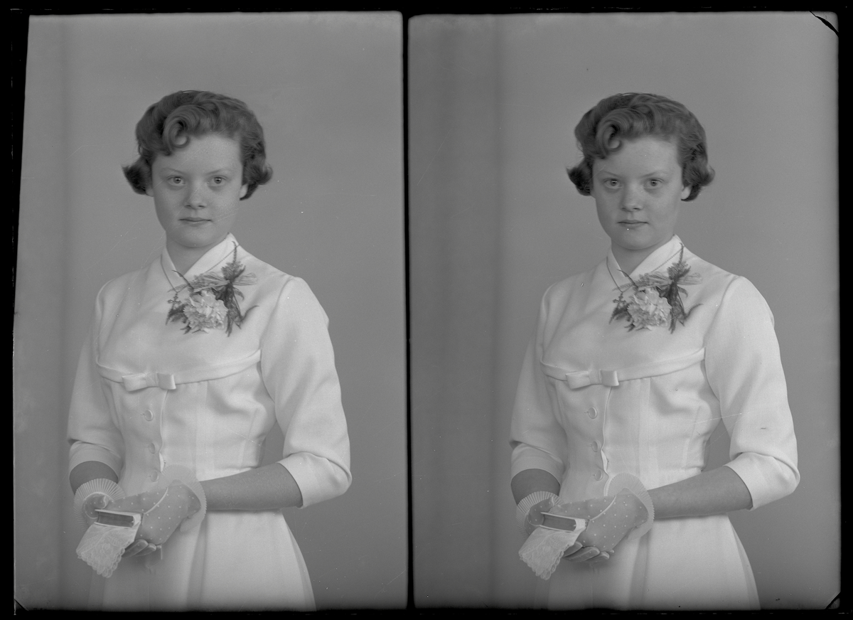 Porträtt, konfirmation. Monika Andersson. Kolbäck. Ur Gustaf Åhmans samling.