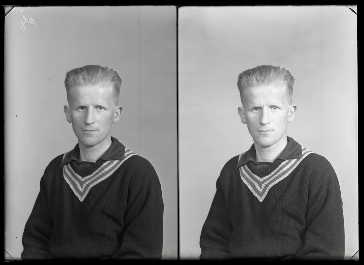 Porträtt, pass, Karl-Gösta Åhman, Gällby gård, Köping.