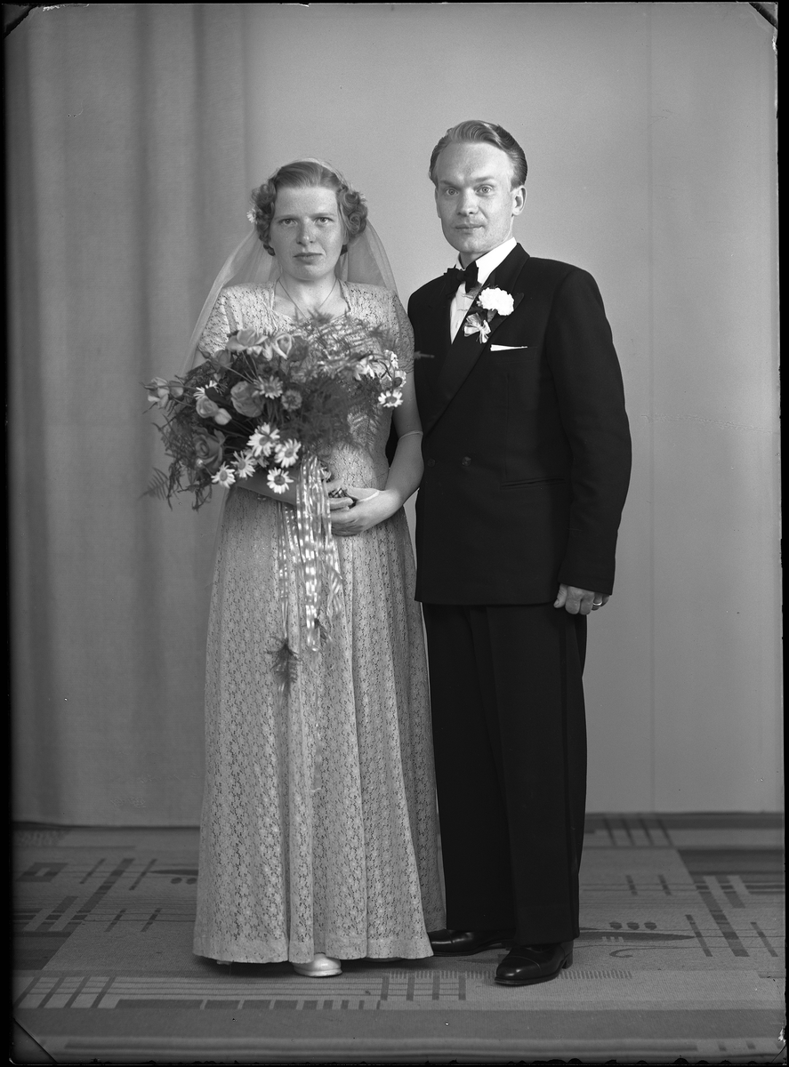 Grupporträtt, brudpar. Birger Åkerman, Kommunhuset, Munktorp.