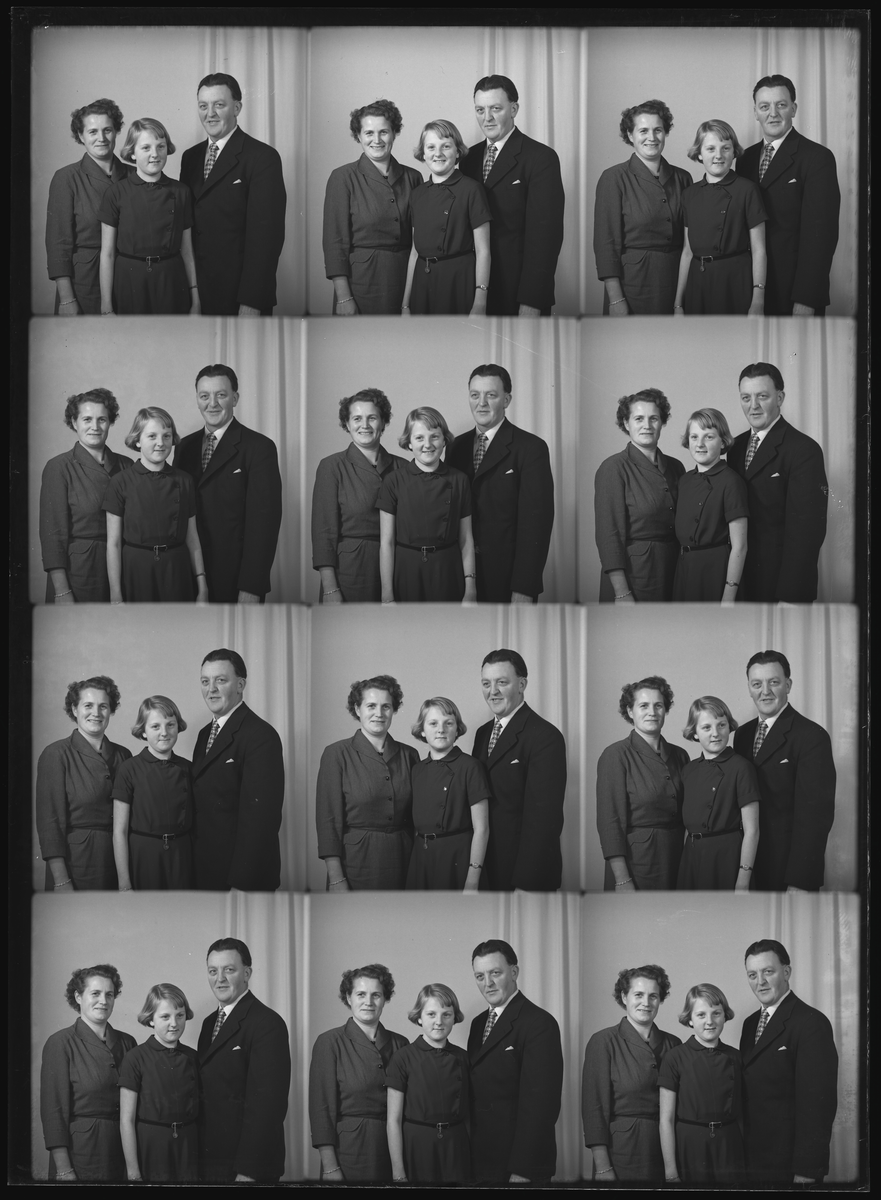 Grupporträtt, tre personer. Bertil Uddberg. Vänsta, Kolbäck. Ur Gustaf Åhmans samling.