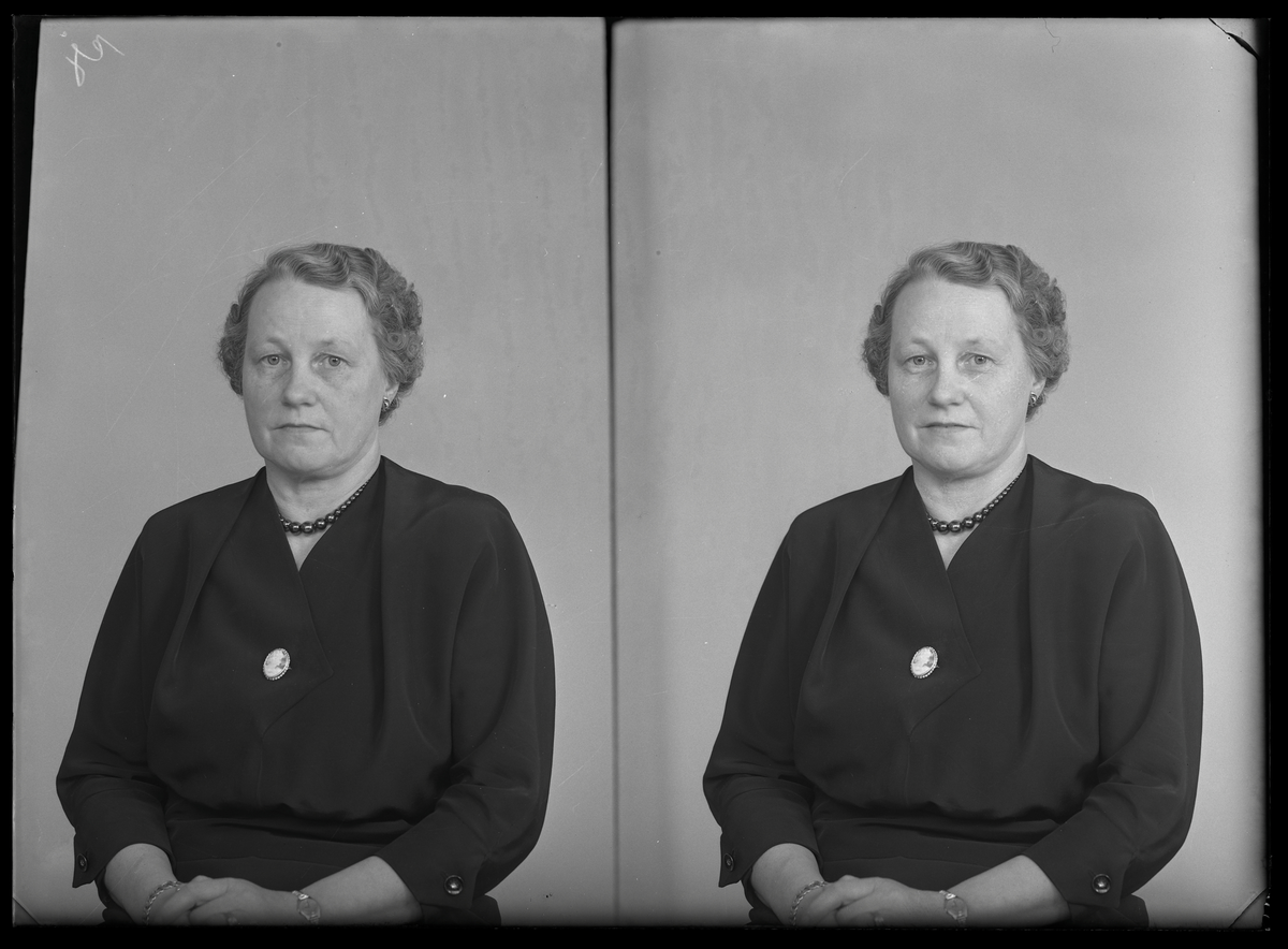 Porträtt, körfoto. Fru Agda Andersson, Kolbäck.