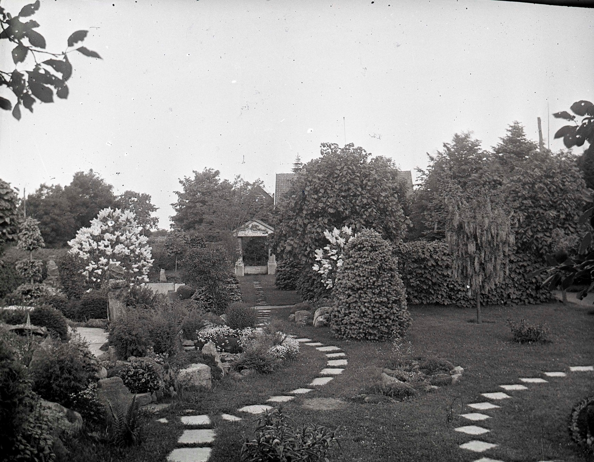 Motiv från Widebergs trädgård med minnesmonumentet från 1930 i bakgrunden.