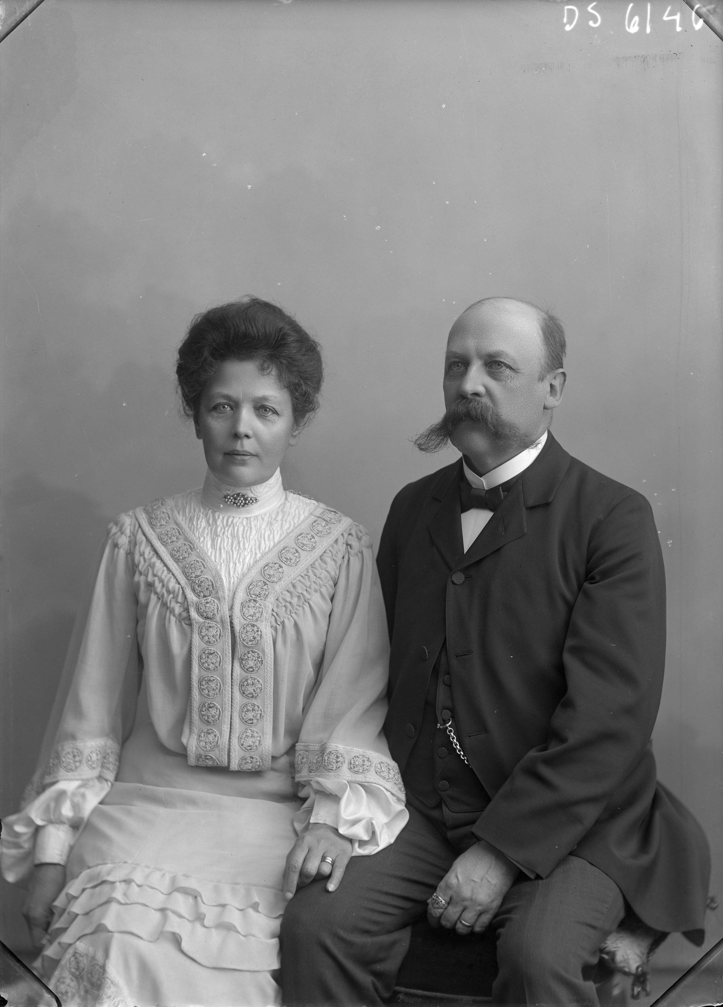Porträtt i helfigur av apotekare Fritz Borg med hustrun Clara.