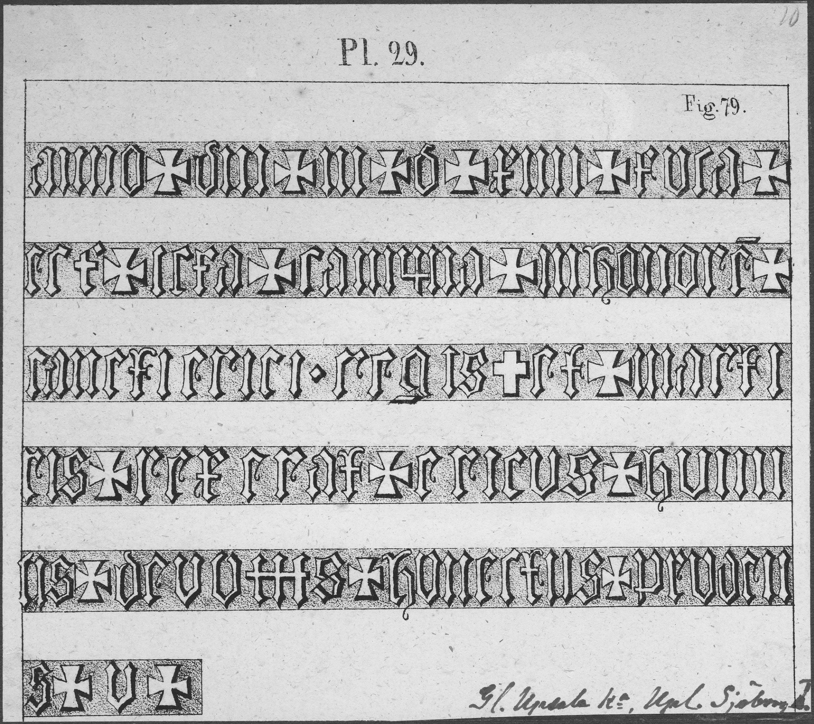 Storklocka, inskription på latin: Erik var en ödmjuk, from rättsinnig och vis konung. Gjuten 1514. Tryck, Sjöborg I., pl. 29.