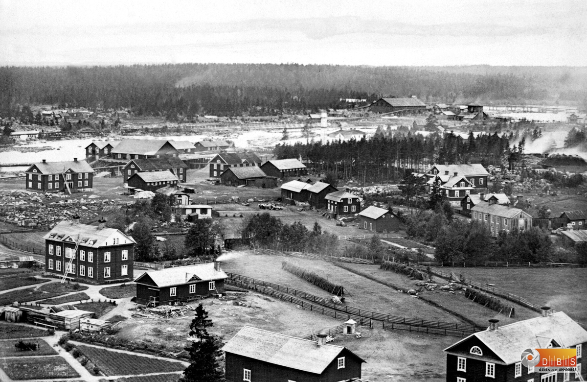 Längst upp till vänster syns vattensågen, norra Ljusnes första såg som revs i början av 1900-talet.
