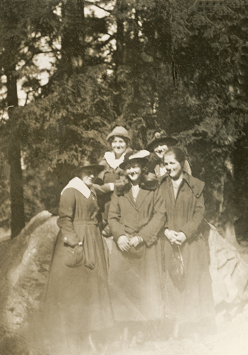 På baksidan antecknat: "Aina Olsson, Gretel Pfannenstiel, Lisbeth Molin, Margareta, Eddi".