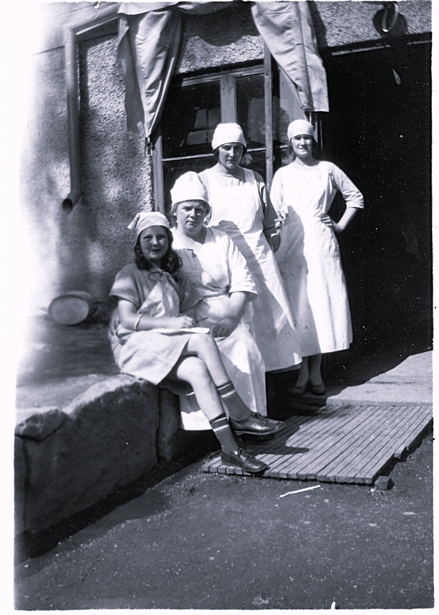 Foto av fyra köksbjörnar, Greta, Ester, Ida och Lill-Inga (enligt bildtext i album).