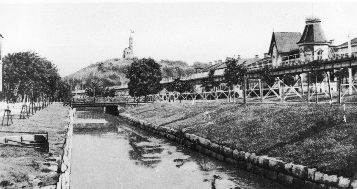 Söderhamnsån och järnvägsviadukten omkring år 1900.