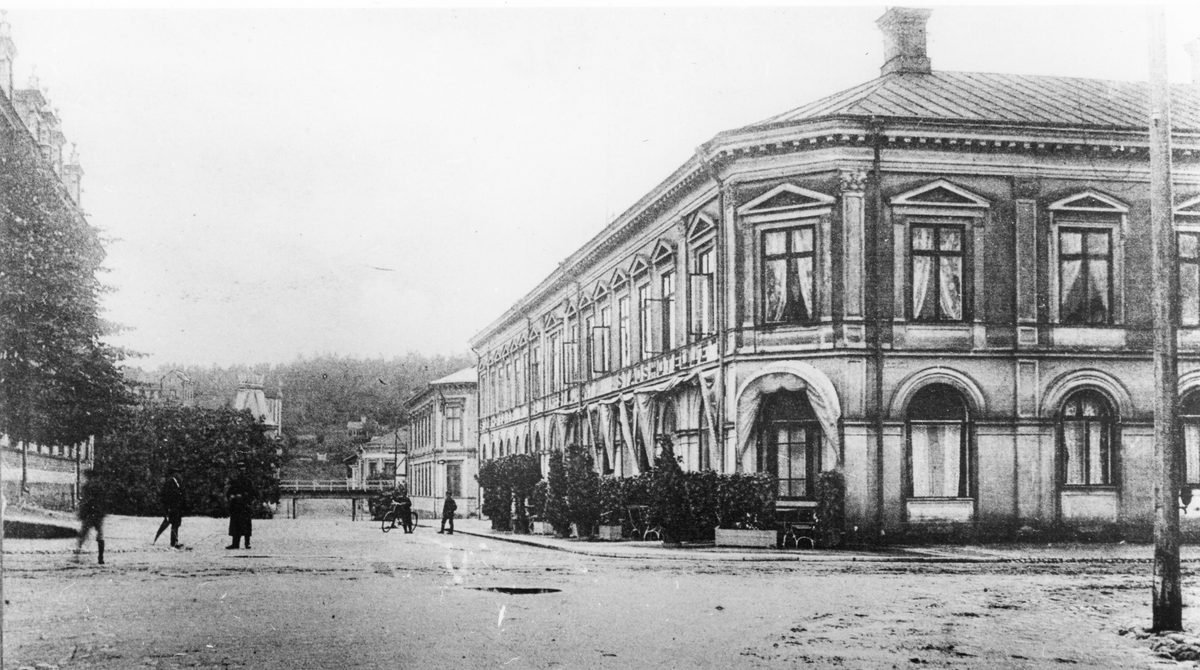 Rådhusgatan mot västra berget, Söderhamn. Foto omkring 1905. Tidigare hette gatan Stationsgatan eftersom den ledde fram till den gamla järnvägsstationen.