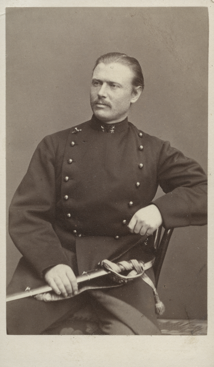 Porträtt av Löjtnant H. Nordenskjöld Smålands Grenadjär Bataljon (enligt text baksida kort).