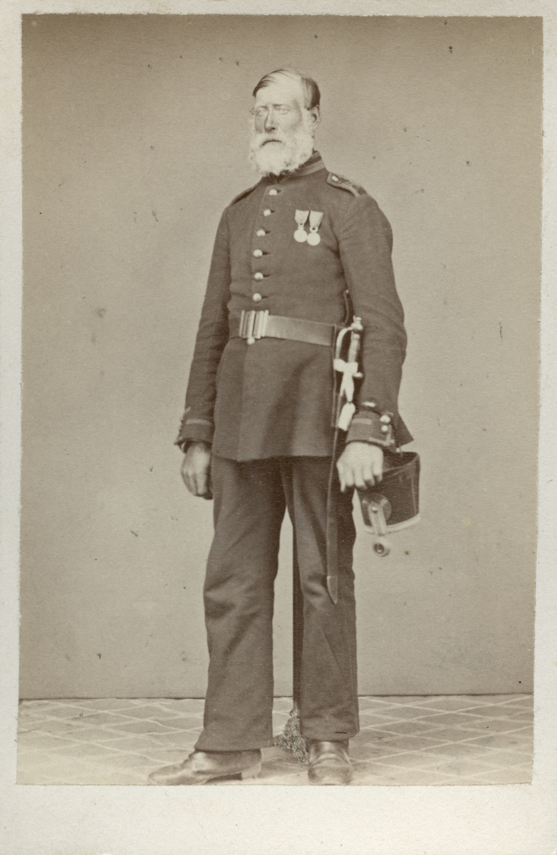 Porträtt av korpral Printz, Alfta komp. (enligt text baksida kort).