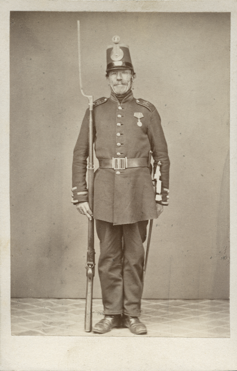 Porträtt av korpral Lindblom, Ovansjö komp. (enligt text baksida kort).