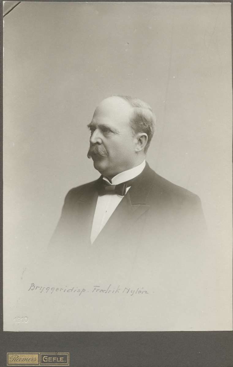 Titel: Porträtt av bryggeridisponent Fredrik Nylén (enligt text framsida kort).
