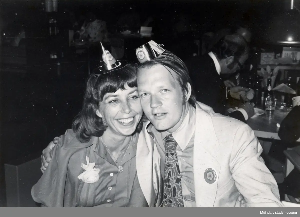 Else-Britt Nilsson och Björn Ogard. Personalfest på varuhuset IKEA i Kållered, Mölndals kommun, okänt årtal. "Fantastiska dagen."