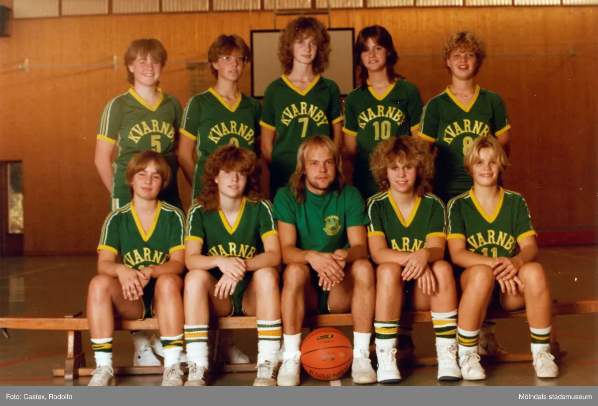 Lagbild av Kvarnby Basket tagen i en idrottshall i Mölndal, år 1983.