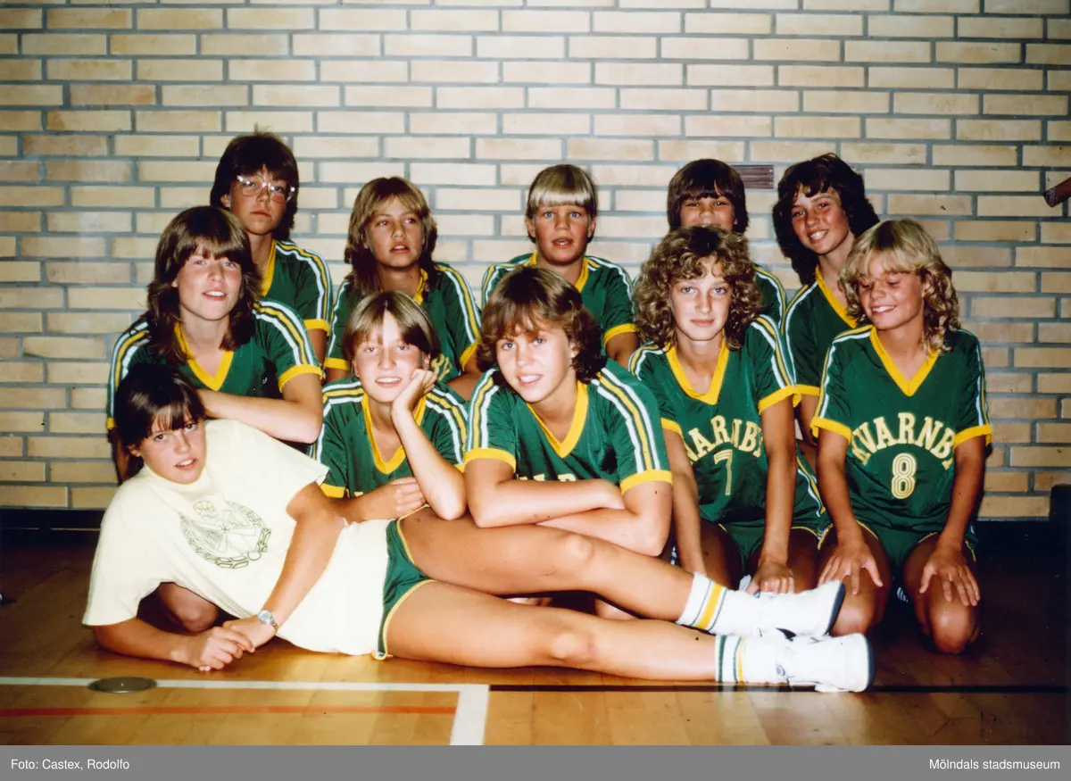 Lagbild av Kvarnby Basket. Fotografi taget i en idrottshall i Mölndal den 14 november 1986.