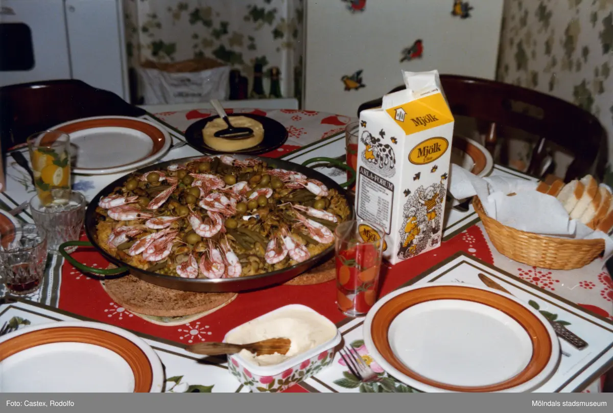 Paella med mjölk. Ett dukat bord på Höjdgatan i Mölndal, december 1979 - januari 1980.