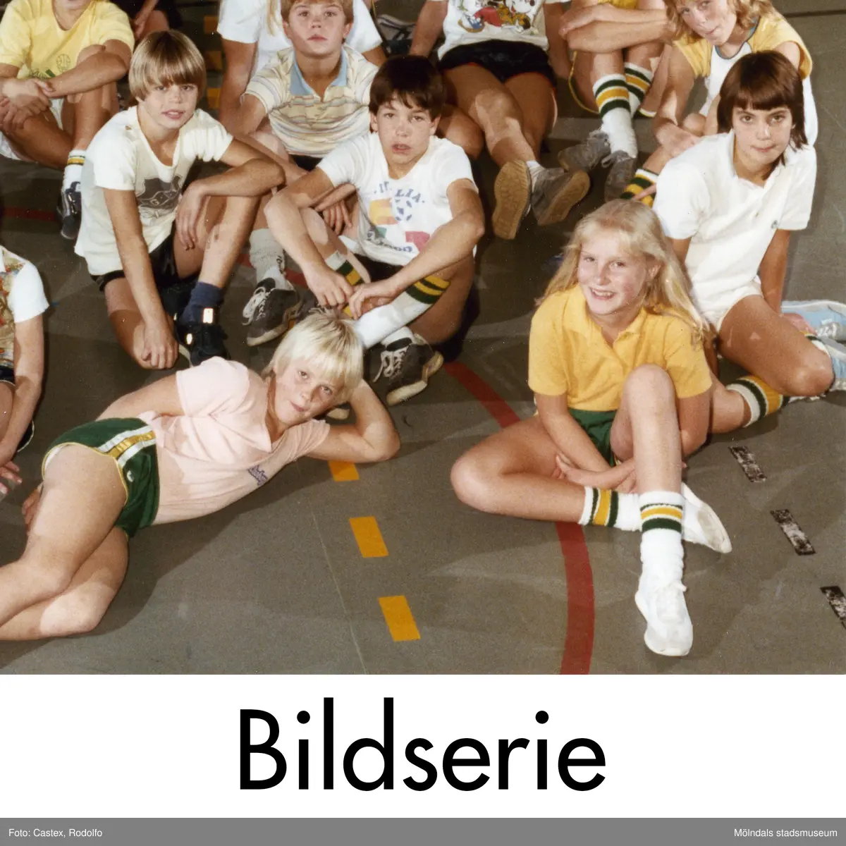 Serie om två fotografier som visar unga basketspelare i Kvarnby Basket. Fotografier tagna i en gymnastiksal i Mölndal, år 1983.
