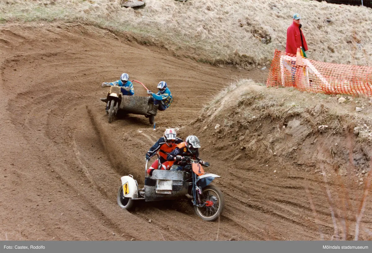 Titel: Sidvagnscrosstävling på Blixåsbanan i Balltorp, Mölndal, den 1 maj 2001.