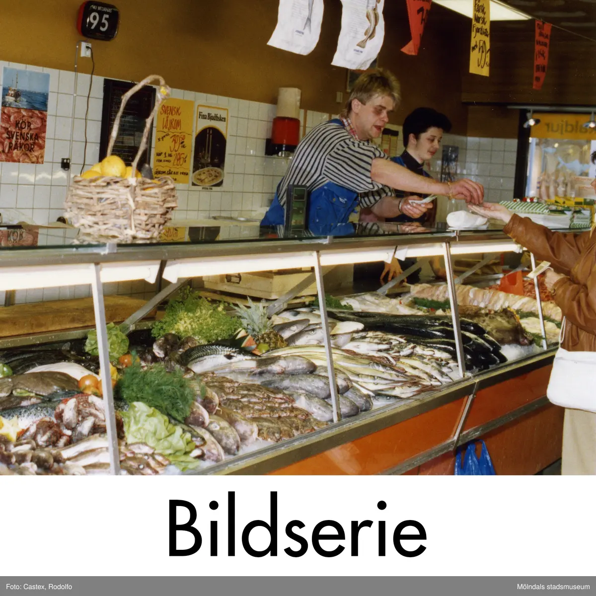 Serie om 24 fotografier som visar fiskaffären i Mölndals centrum den 10 maj 1991.