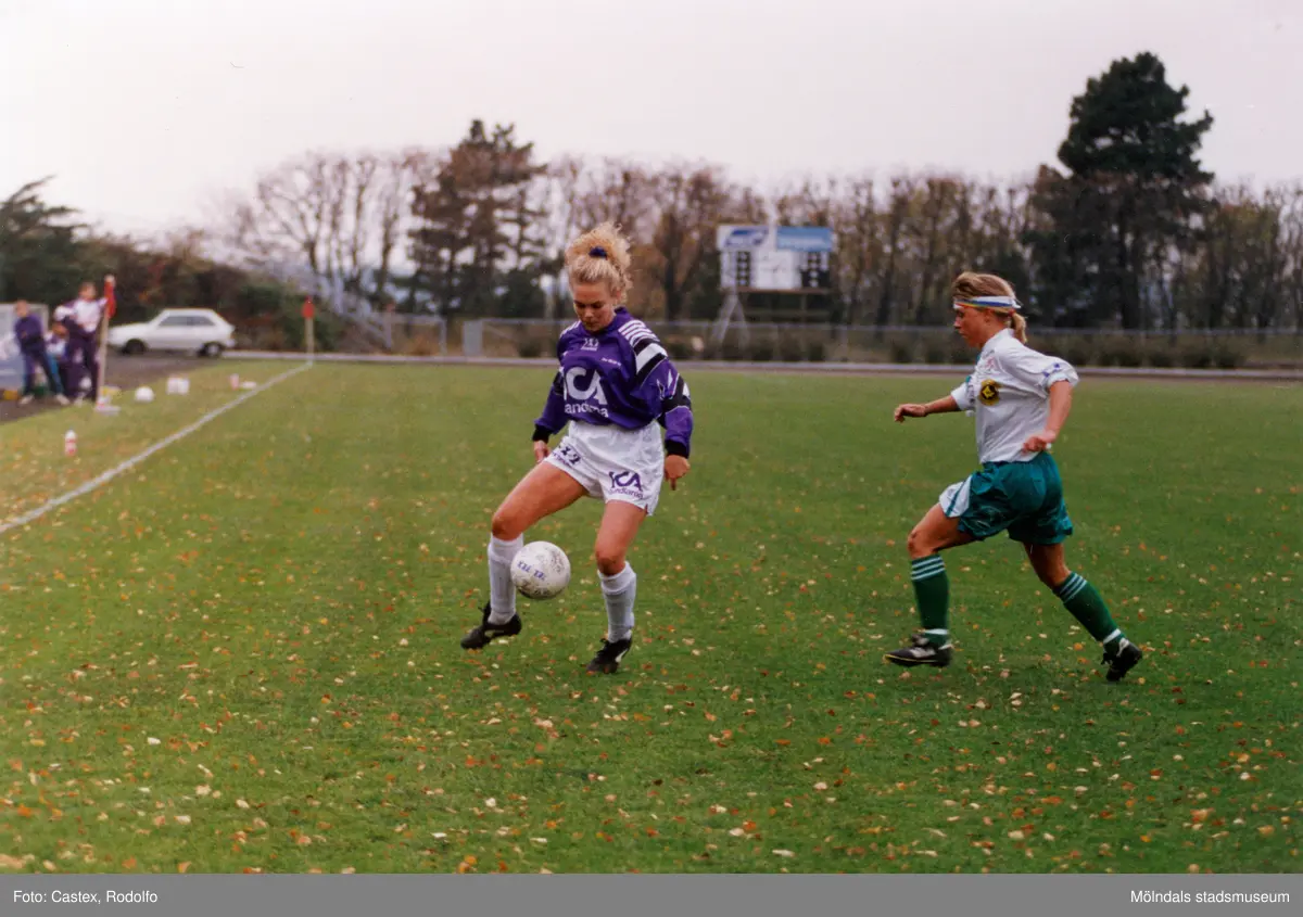 Fotbollslaget Jitex BK spelar match på Kvarnbyvallen i Mölndal, år 1994. Motståndarlag och slutresultat är okända.