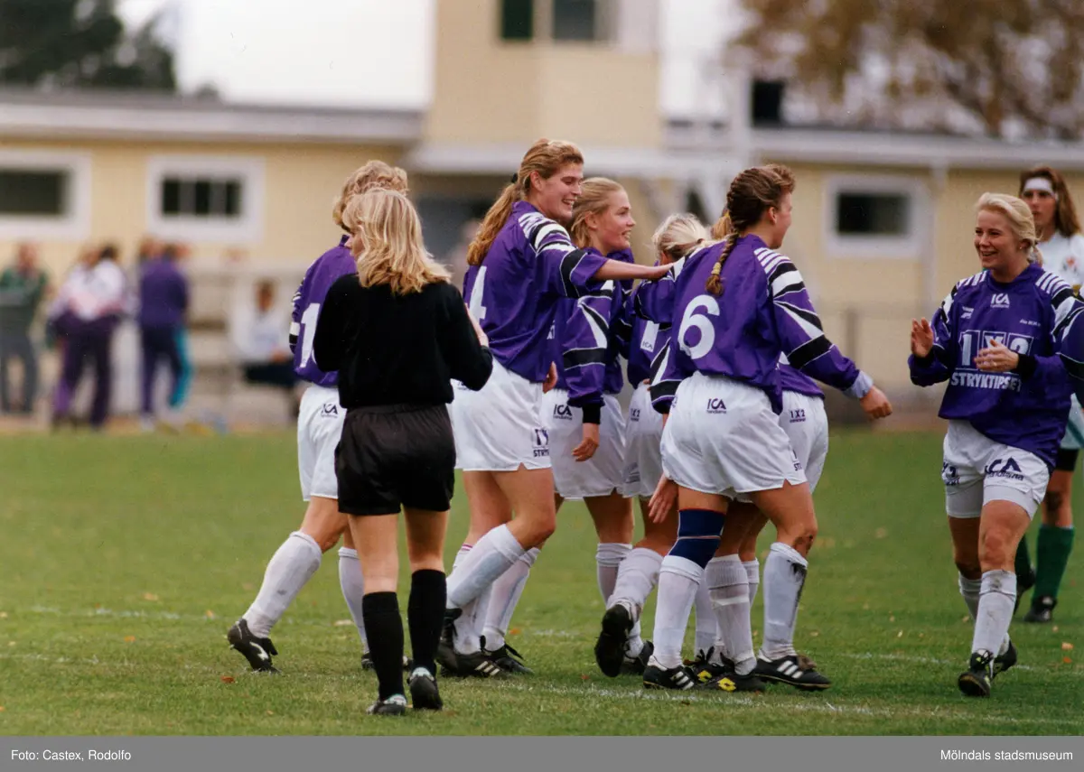 Fotbollslaget Jitex BK spelar match på Kvarnbyvallen i Mölndal, år 1994. Motståndarlag och slutresultat är okända.