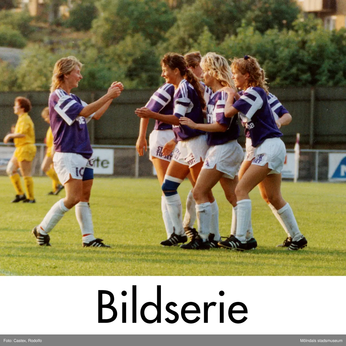 Serie om 31 fotografier som visar fotbollslaget Jitex BK spela match mot Öxabäcks IF på Kvarnbyvallen i Mölndal, maj 1990. Jitex BK vann matchen med 3-1.