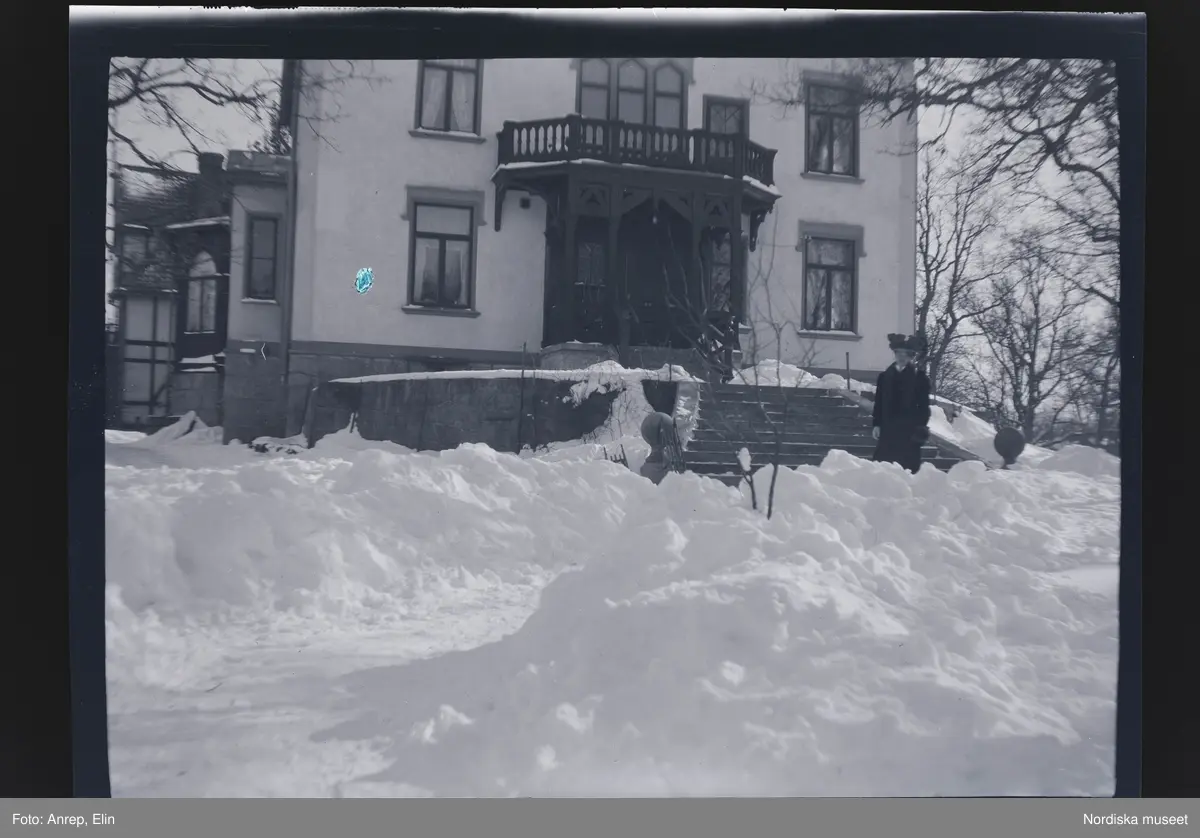 Elin i snön utanför familjen Morthensens villa Solveden, Djursholm.