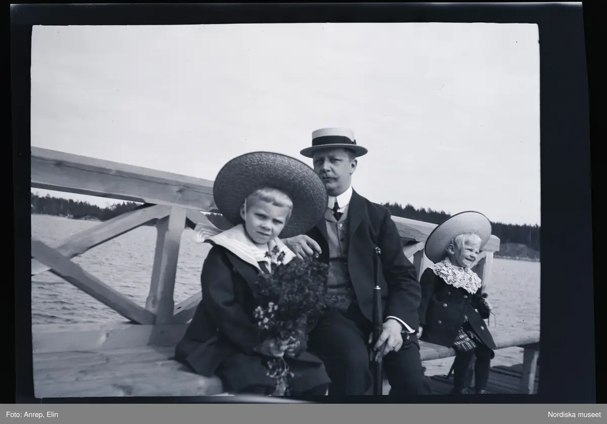 Leonarth Morthensen med som och dotter sitter på en brygga.