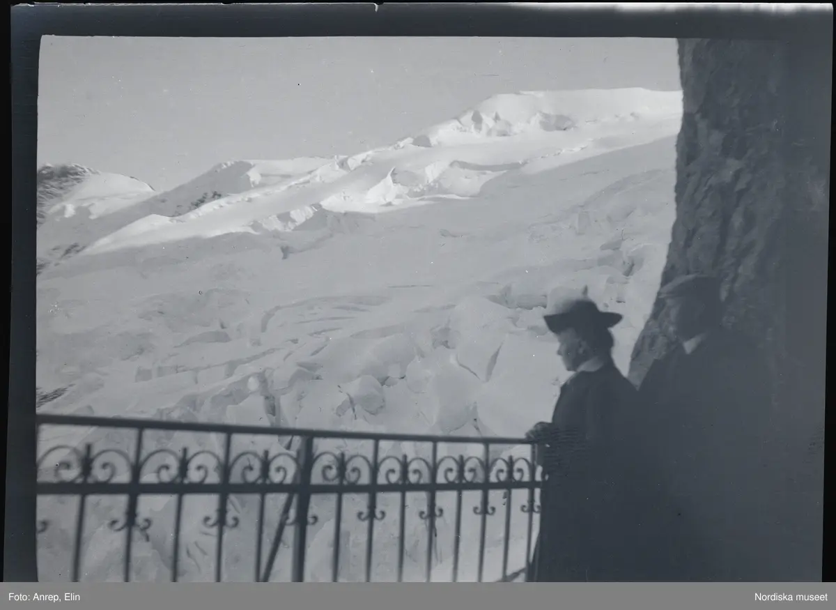 Titel: Fotografier tagna under en resa Elin och Leonarth gör 1907 till Schweiz, med tåg via Danmark och Tyskland. Platser som besöks på resan är bl.a. Lauterbrunnen, Luzern och Bern.