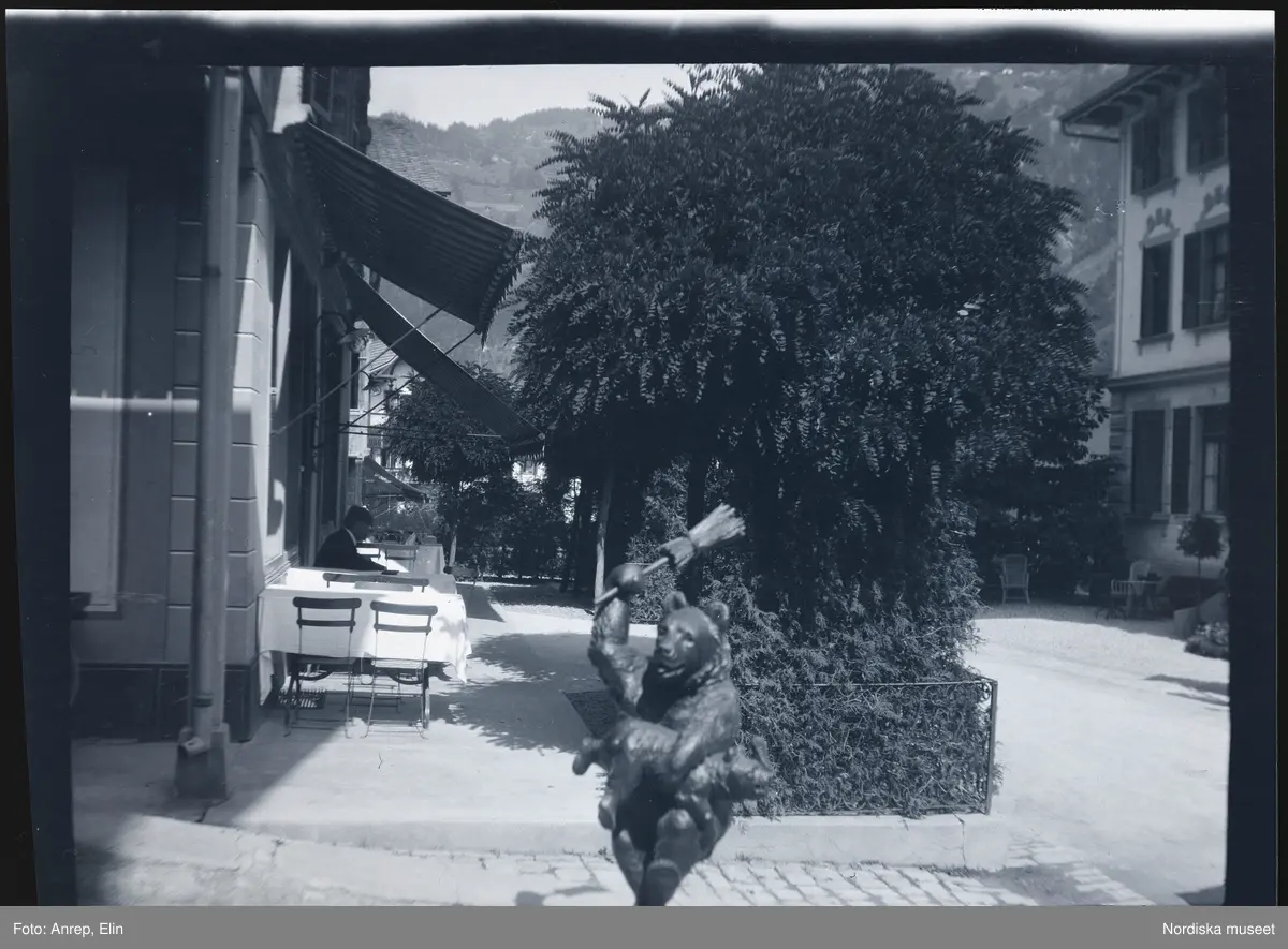 Titel: Fotografier tagna under en resa Elin och Leonarth gör 1907 till Schweiz, med tåg via Danmark och Tyskland. Platser som besöks på resan är bl.a. Lauterbrunnen, Luzern och Bern.