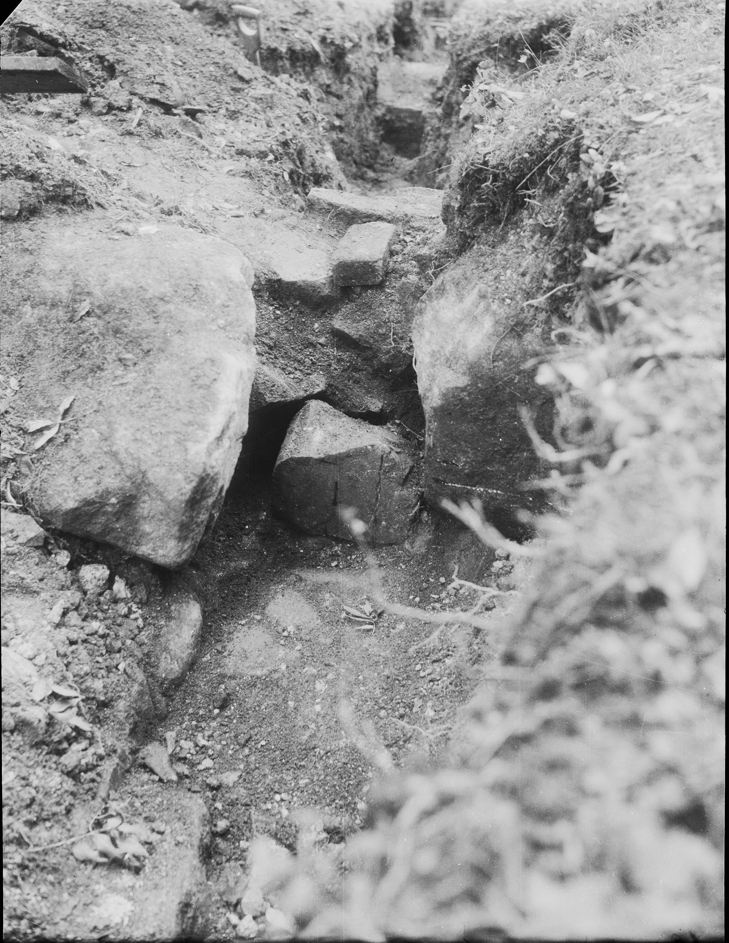 Östra korsgångens västra mur. Inre hörnet mellan norra och östra korsgången. Från sydväst.