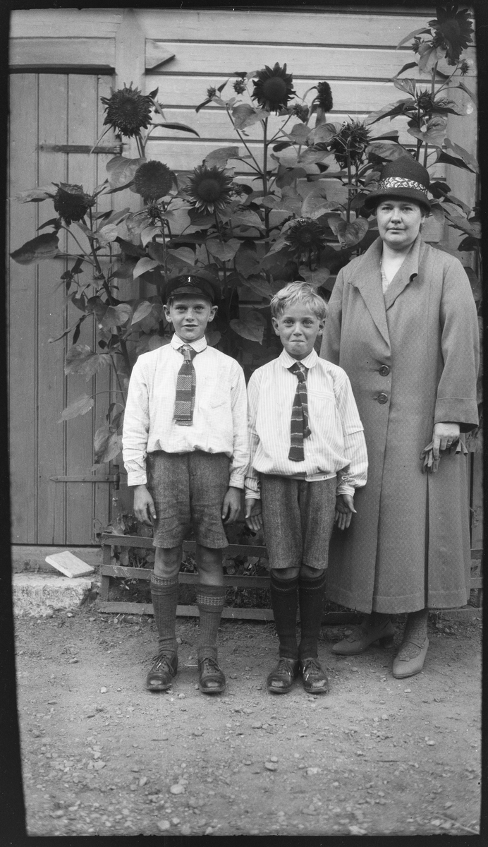 Vänersborg. Södergatan 24. Bröderna William och Folke med sin mor Edit Lindgren