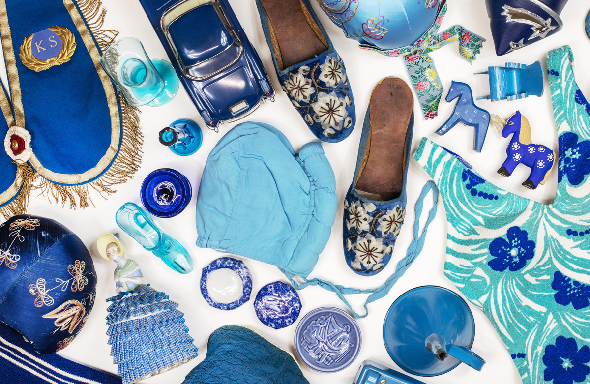 Ur Vänersborgs museums samlingar. Arrangemang av blå föremål