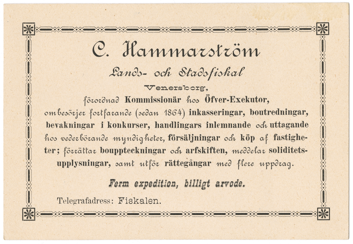 Titel: Visitkort C. Hammarström