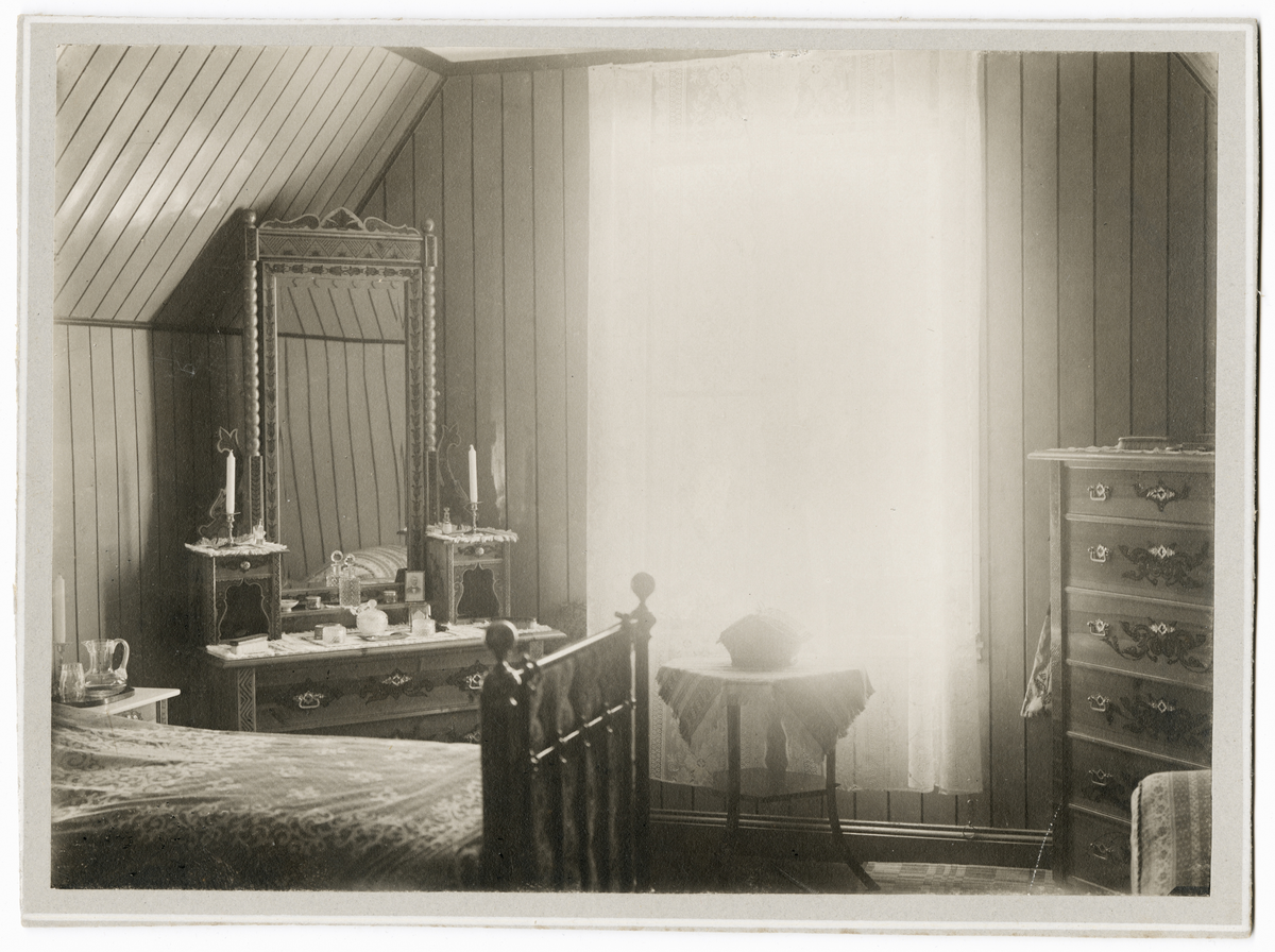 Tengrenstorp. Uno och Agnes Hammarströms sovrum med specialbeställda möbler