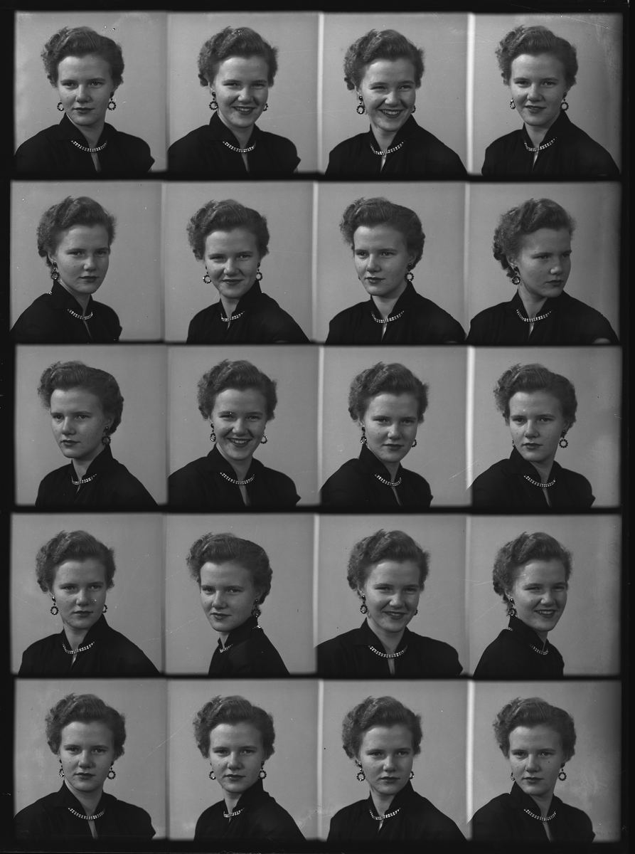Kvinnoporträtt, polyfoto. Fröken Gun Larsson, Ansta, Kolbäck.