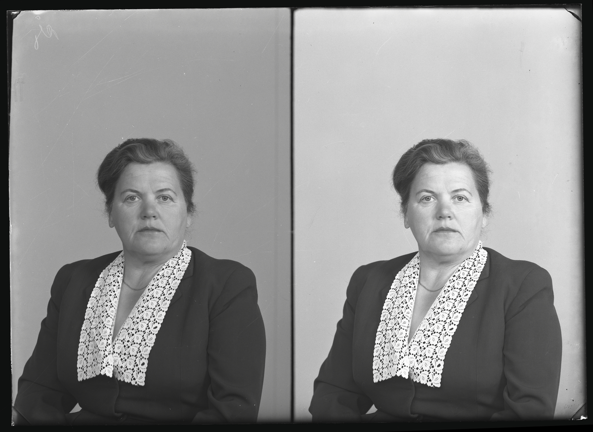 Porträtt, passfoto. Fru Vanda Holmberg. Sörstafors. Ur Gustaf Åhmans samling.