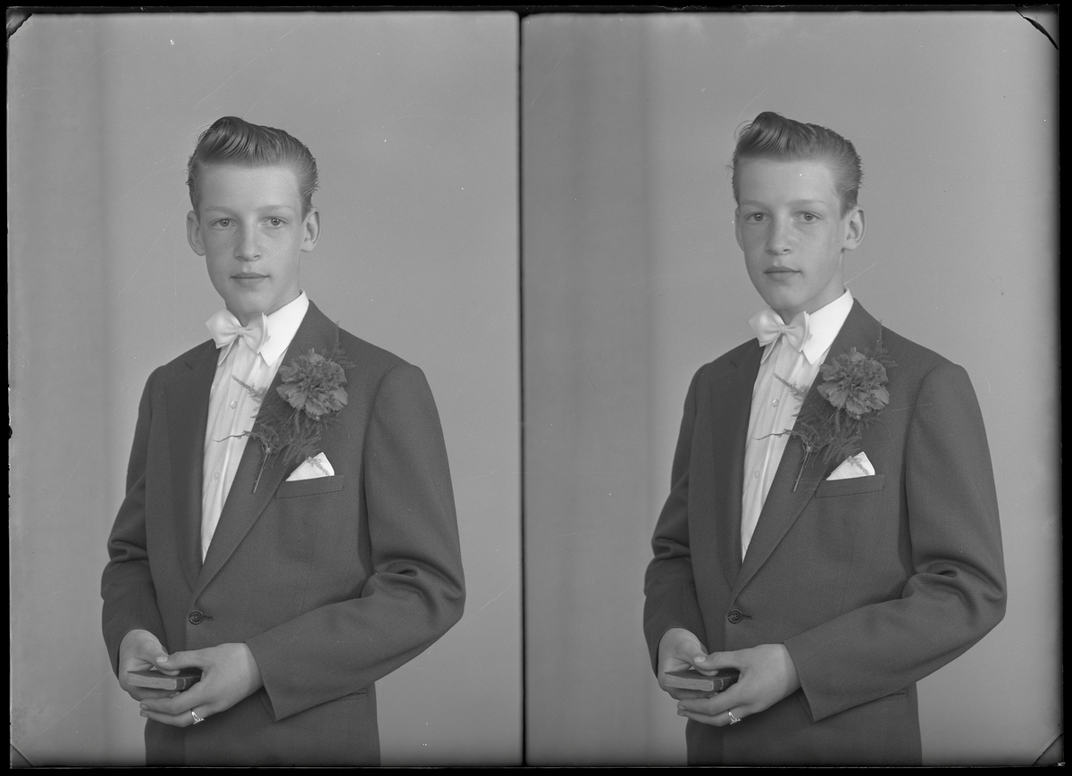 Porträtt. (Konfirmation), Hans Pettersson, Gränby, Kolbäck. Ur Gustaf Åhmans samling.
