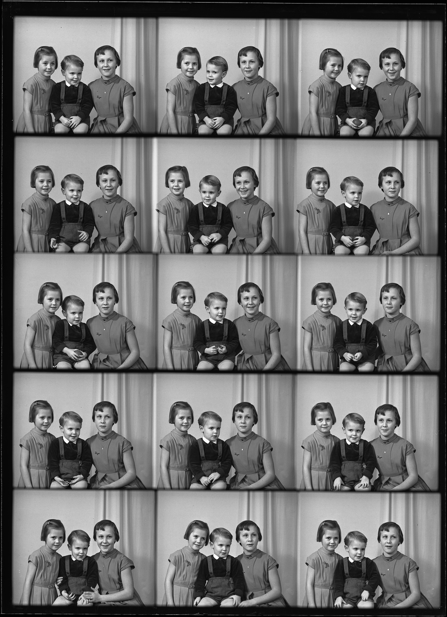 Grupporträtt, tre barn. Fru Inga Maj Karlsson, Skogsta, Dingtuna.