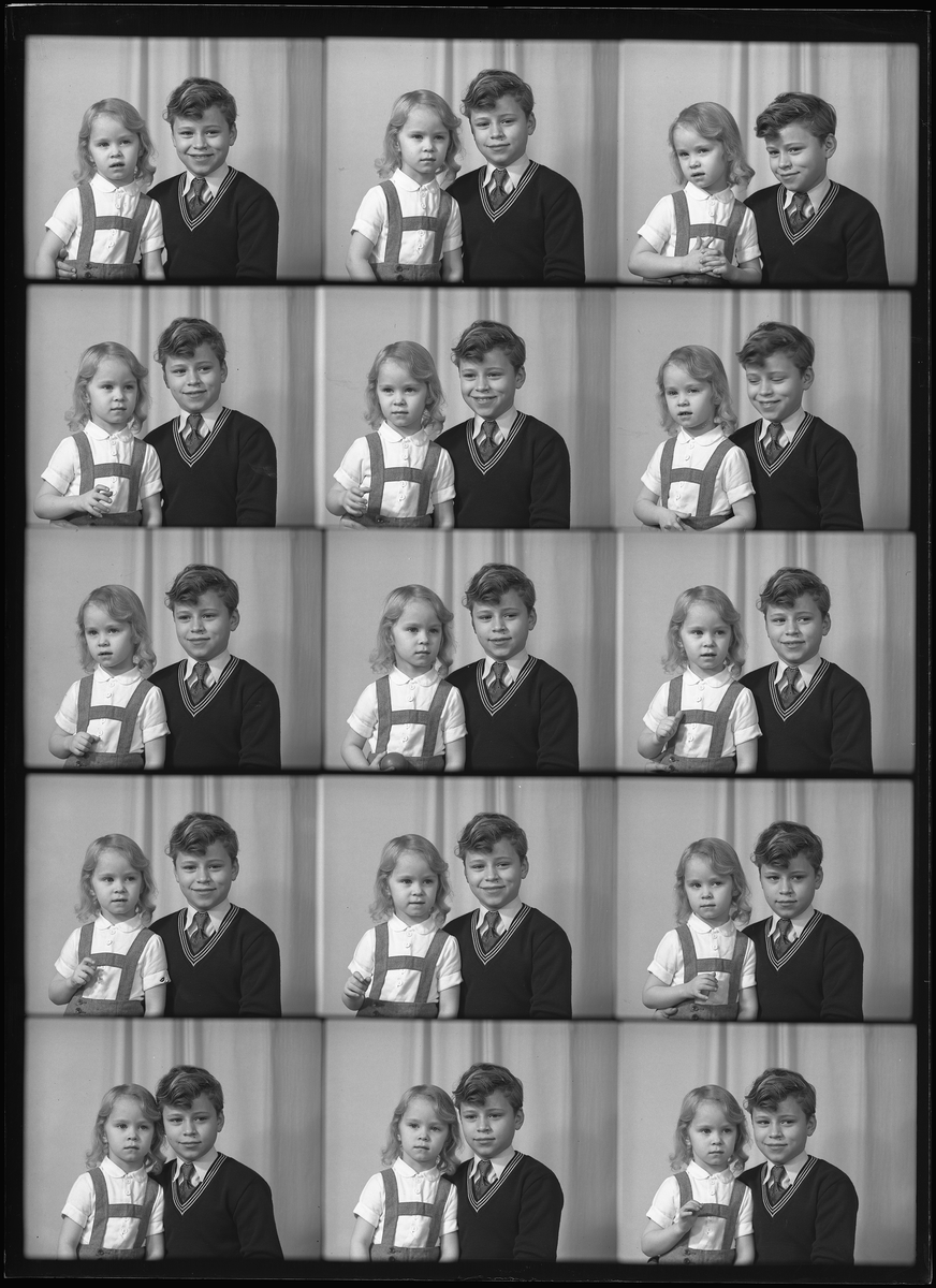 Grupporträtt, 2 st barn. Fru Elsa Flodström, Folkparken, Kolbäck.