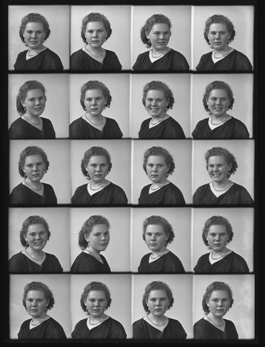 Porträtt, polyfoto. Berit Andersson. Gränby, Kolbäck.