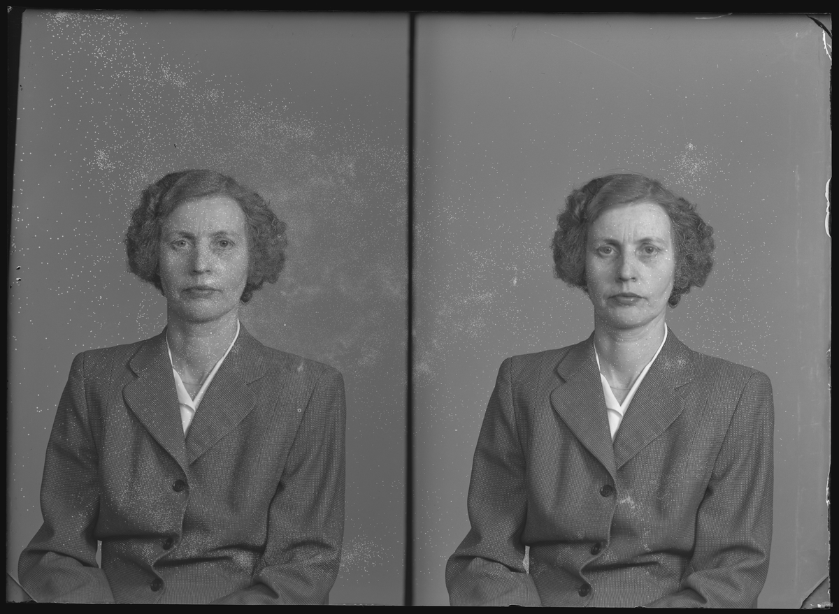 Kvinnoporträtt, pass. Fru Saimi Stenberg. Östtunag. 11-13, Hallstahammar. Ur Gustaf Åhmans samling.