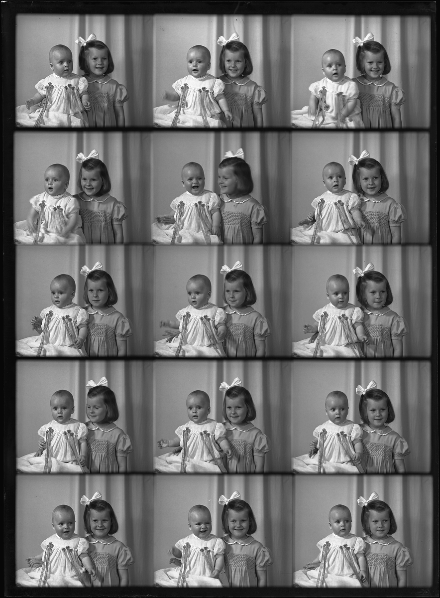 Grupporträtt, två barn. Fru Mary Jansson, Box 1015, Hallstahammar.