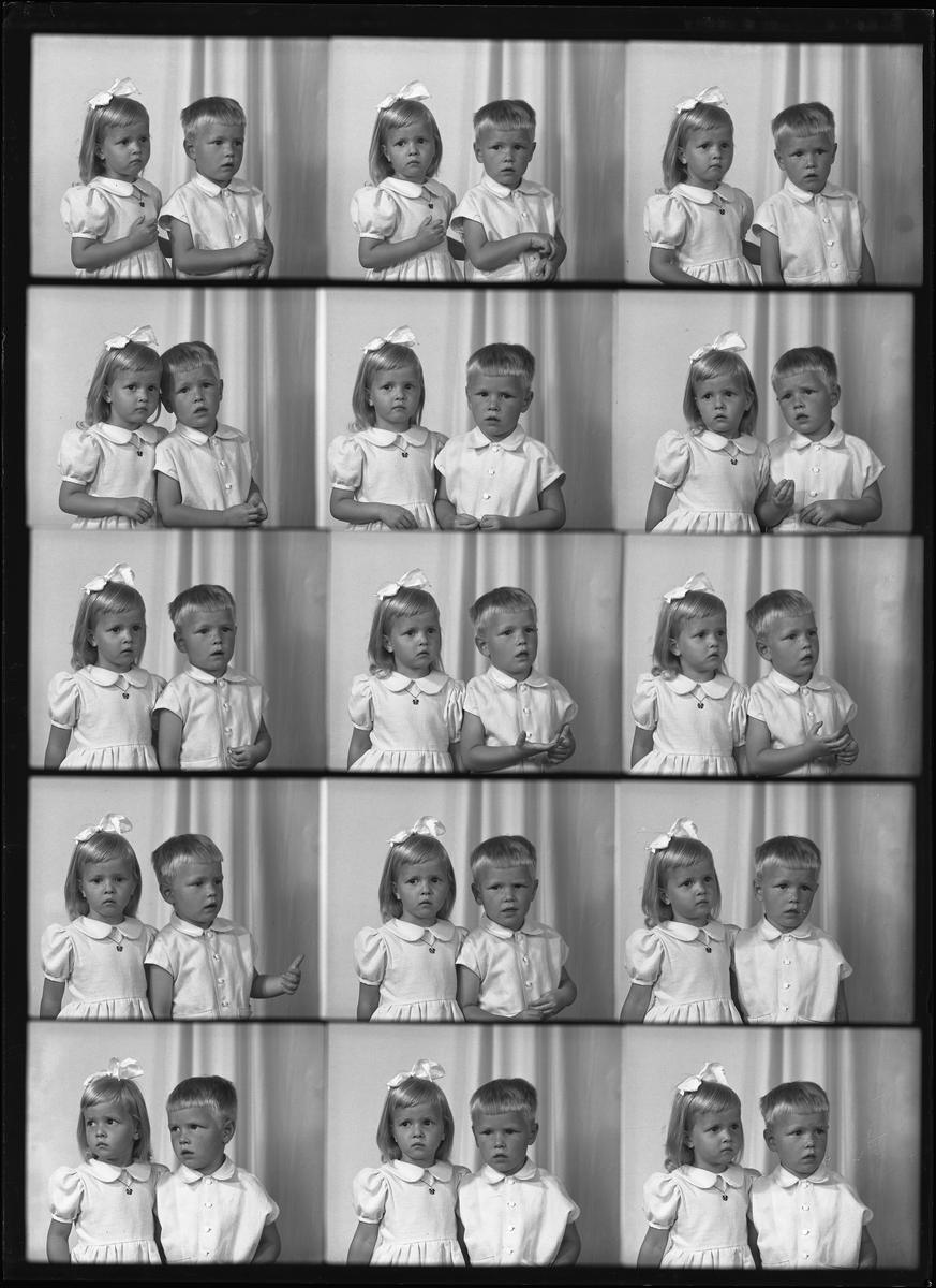 Grupporträtt, två barn. Fru Ingrid Grund, Fack 1 Kloten.