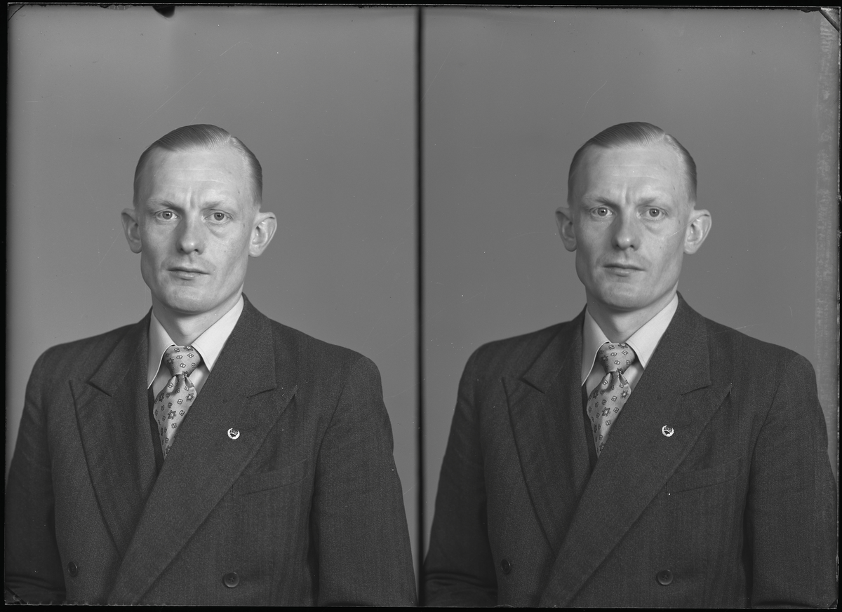 Mansporträtt. Passfoto. Gunnar Andersson, Sörstafors, Kolbäck.